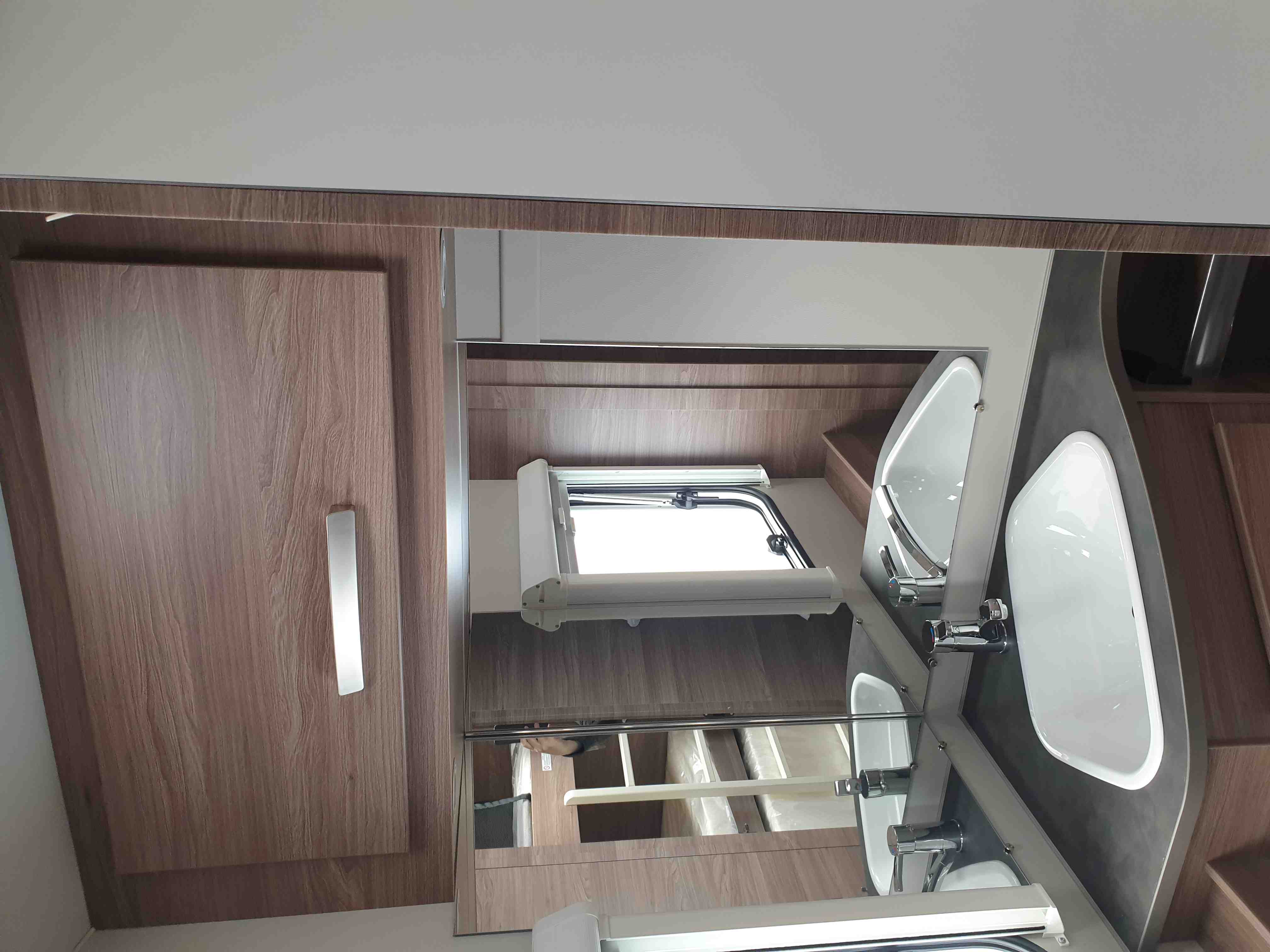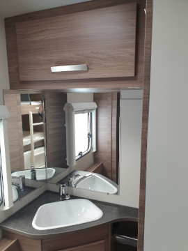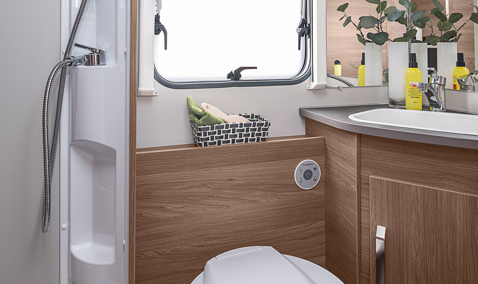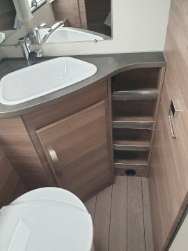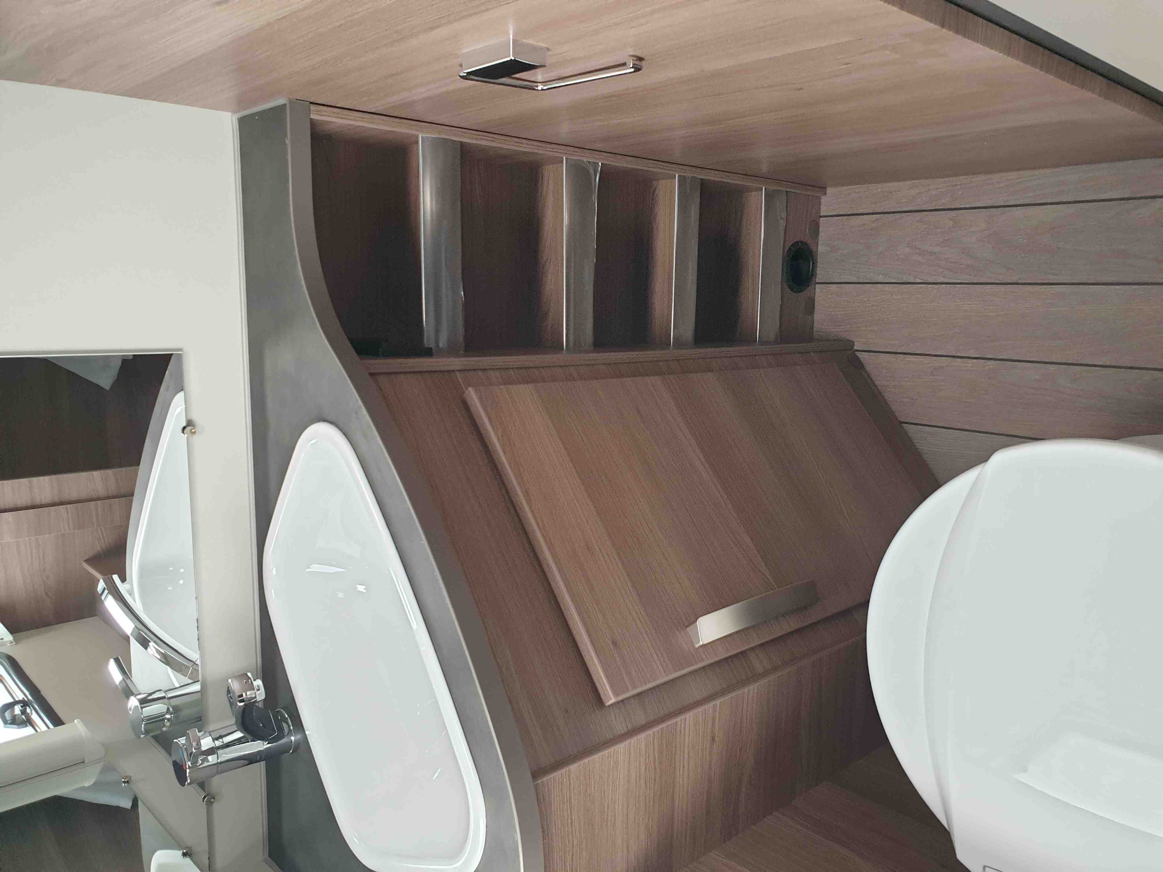 Chemické WC, umyvadlo, zrcadlo i úložný prostor na hygienu