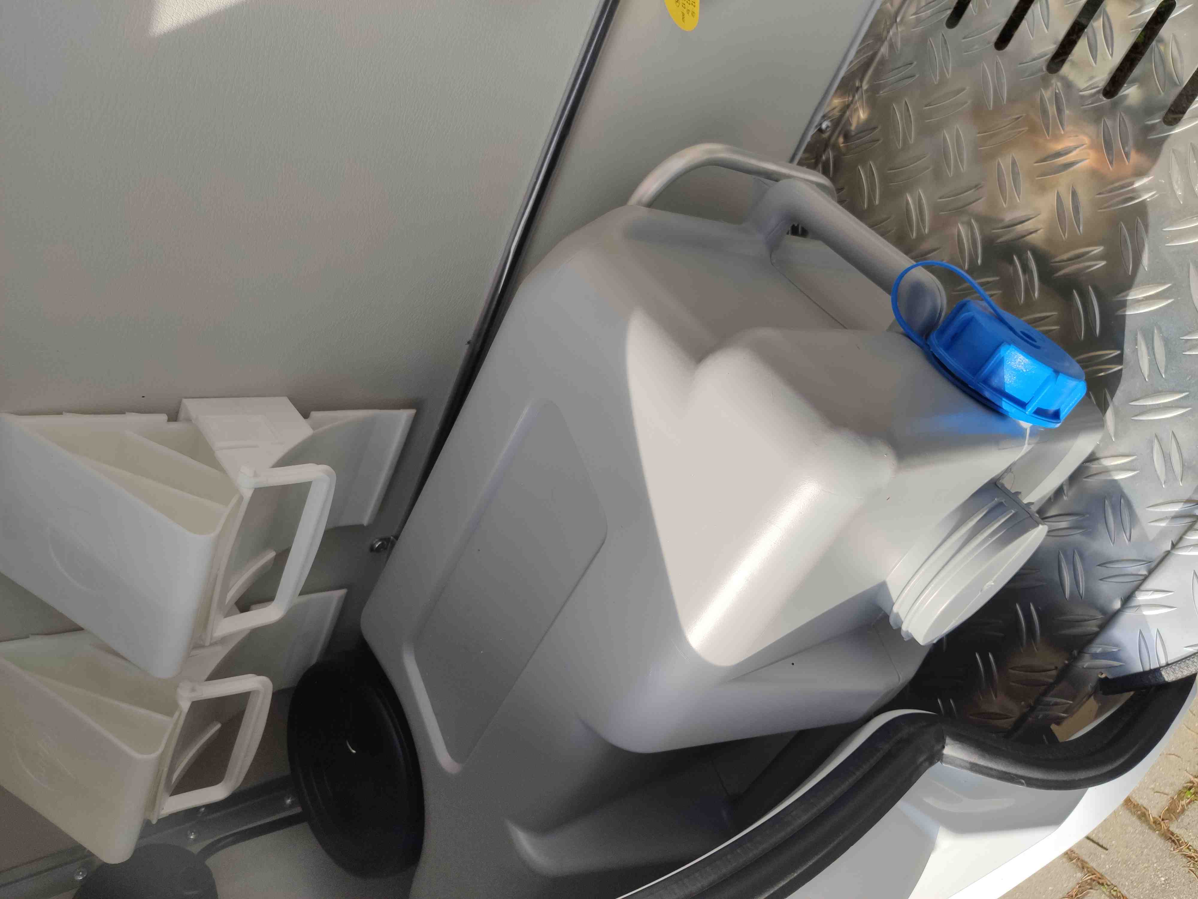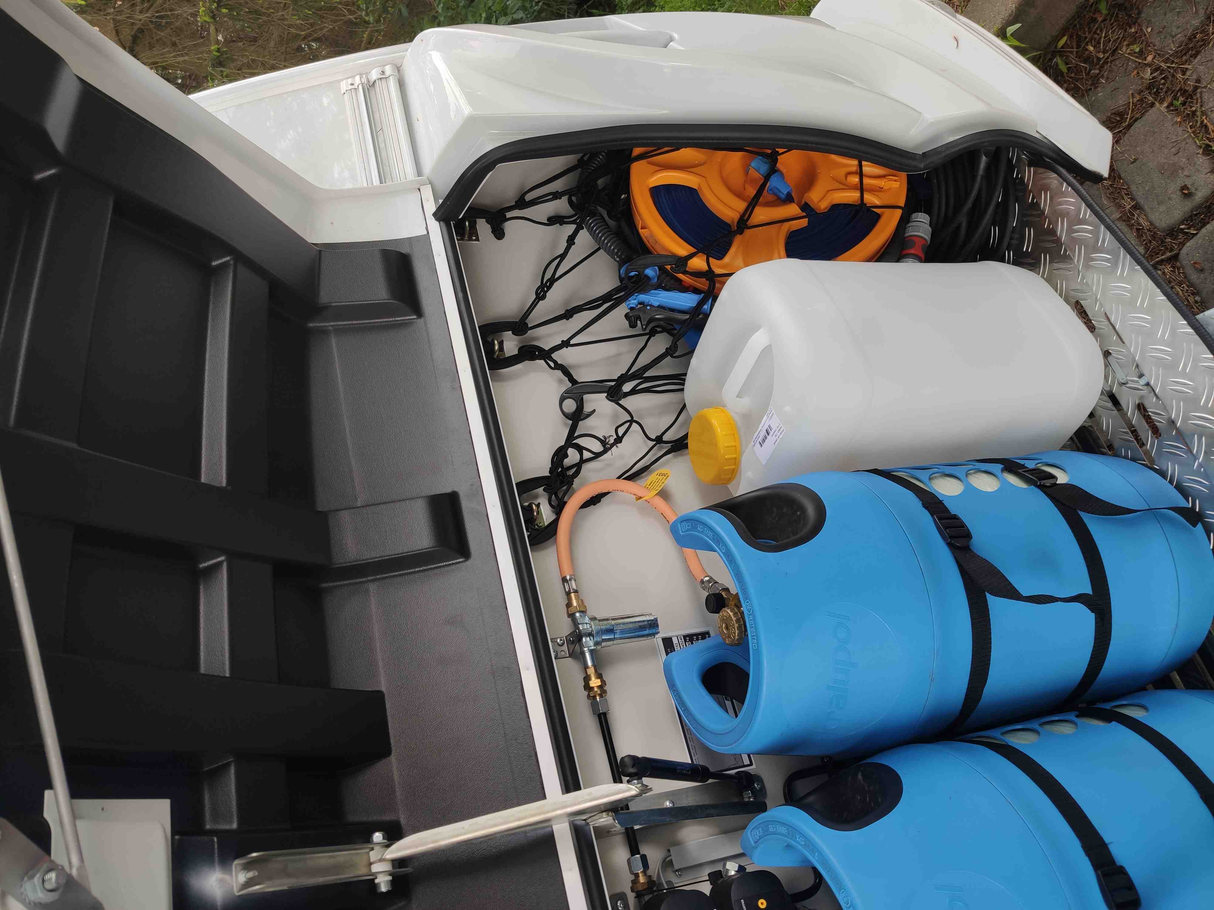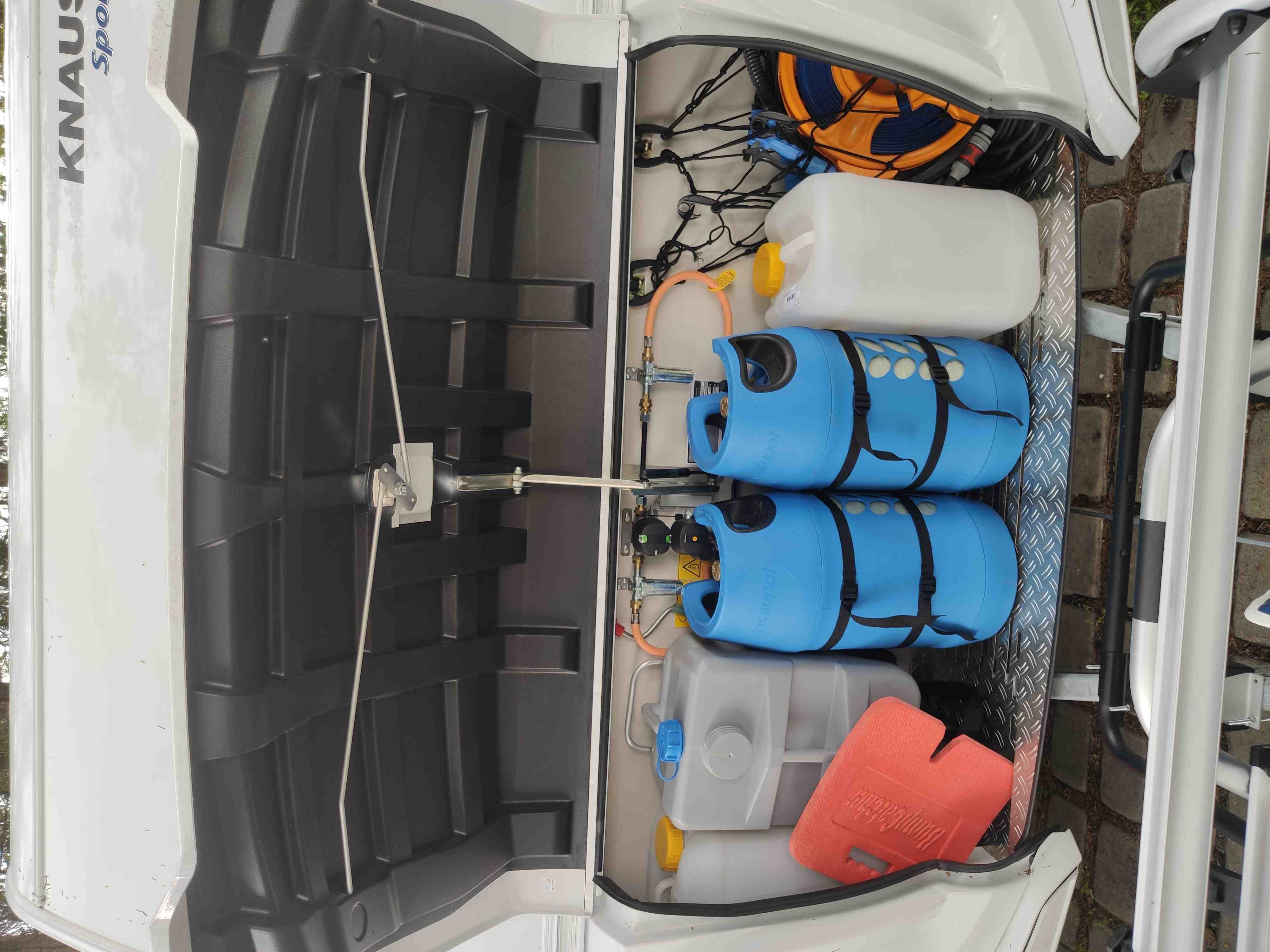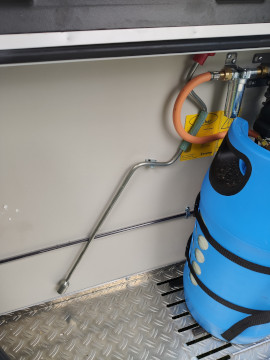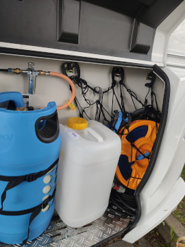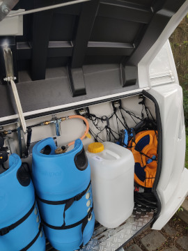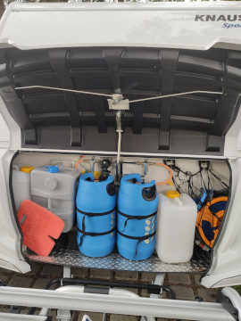 Nádrž na vodu 45l s přípojkou z městkého řádu (v lépe vybavených kempech se nemusíte starat o doplňování vody)
