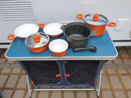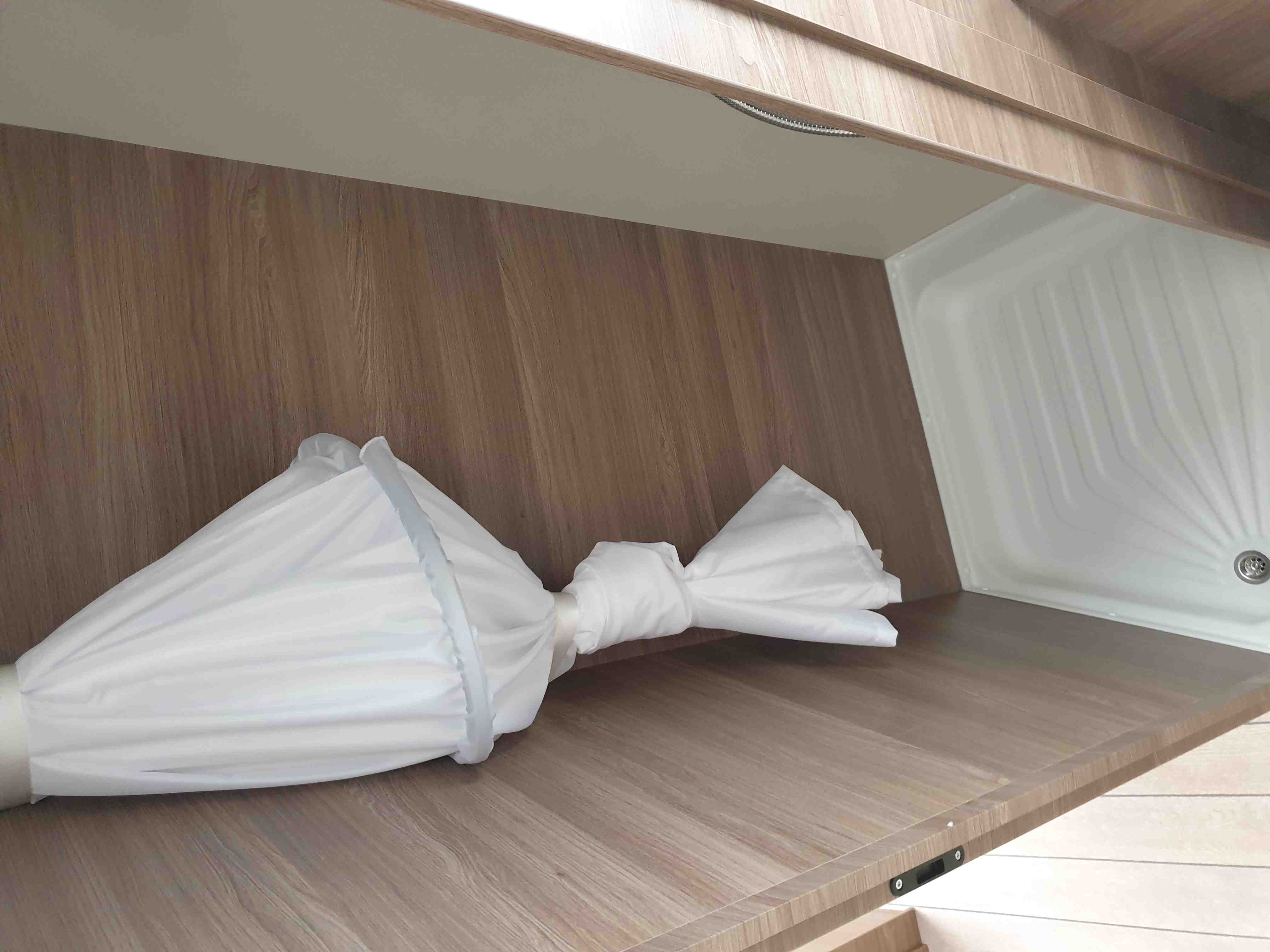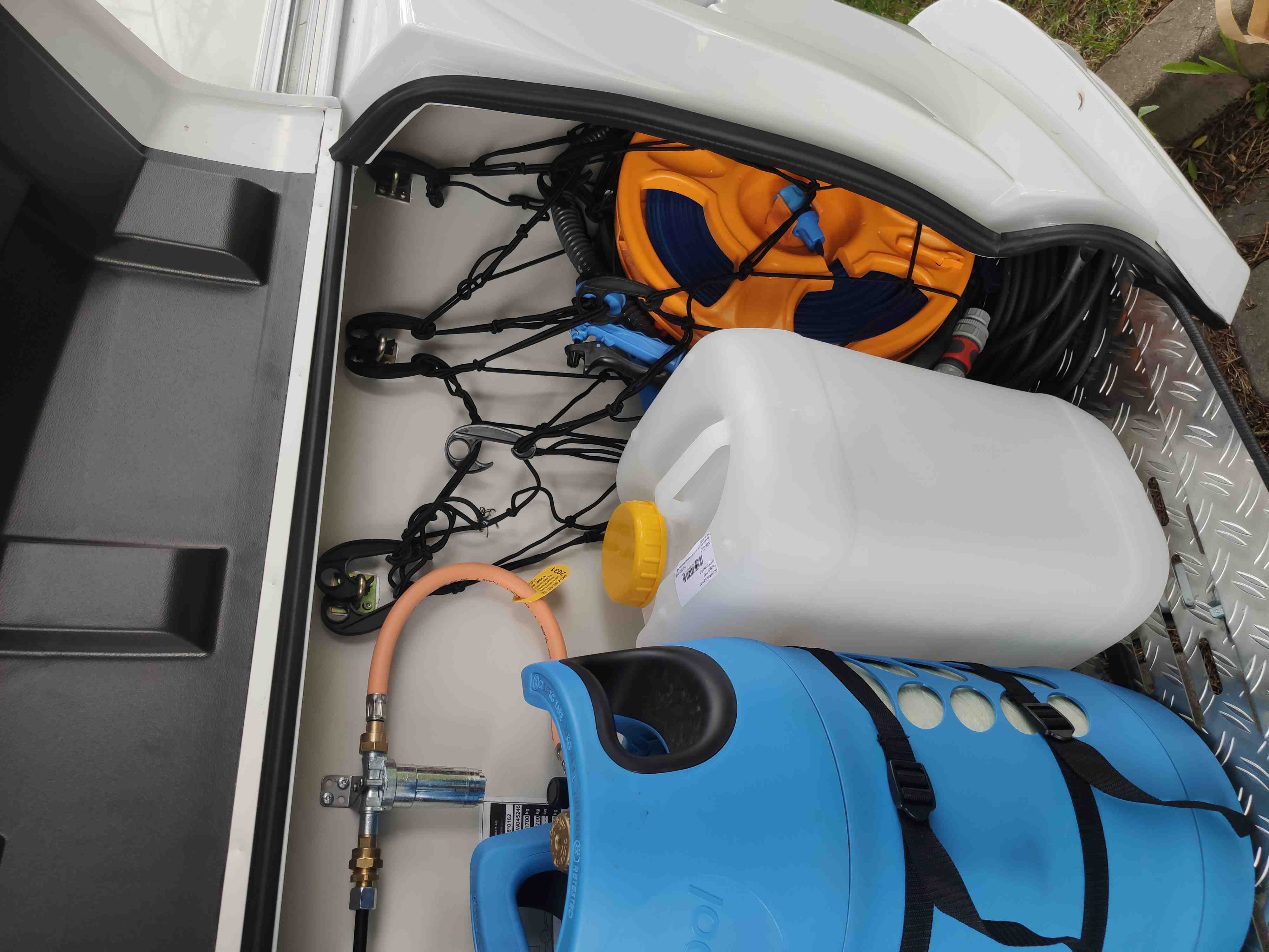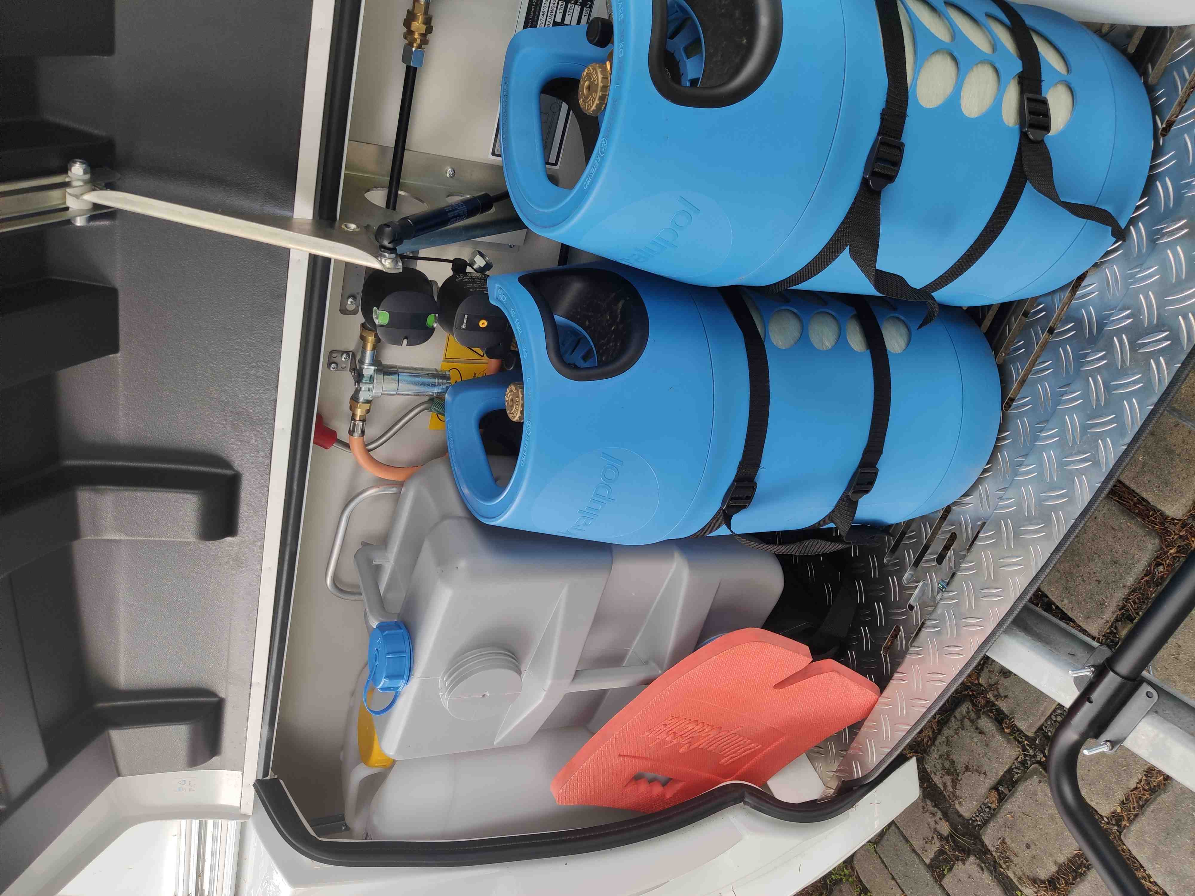 Nádrž na vodu 45l s přípojkou z městkého řádu (v lépe vybavených kempech se nemusíte starat o doplňování vody)