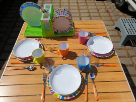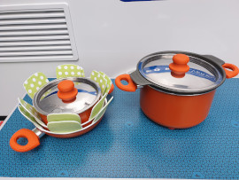 Mini myčka nádobí, sada nádobí, příbory, hrnce, pánve, odkapávač
